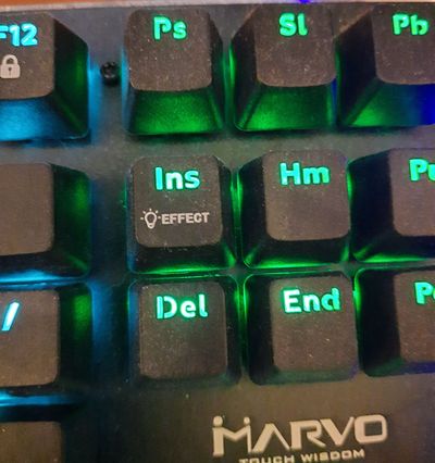 На коробке написано 10 режимов подсветки, но ни слова как их переключать. В коробке нет никакой инструкции, ни драйверов, ничего. Как обычно выход один - гугл знает все. Пошел гуглить. Думал может это опять общеизвестный среди молодежи факт не требующий объяснений, но нет оказалось, что переключение от клавы к клаве отличается , даже в моделях одного производителя ну и как узнать то? В конце концов нашел ответ в отзывах покупателей в магазине dns, где один милый человек сообщил, что надо нажать fn+ insert. И вот наконец получилось, все кнопки перманентно горят, зову дочь и показываю ей как менять режим и в этот момент замечаю что на кнопке insert для дурачков вроде меня написано "effect".