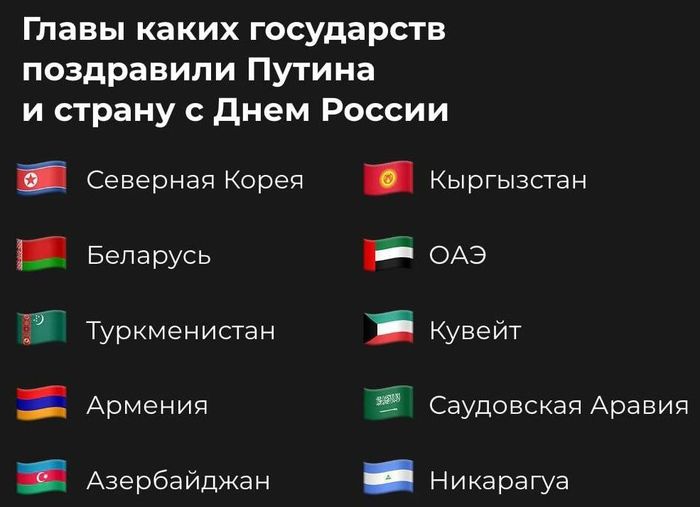 Вот он дивный новый Русский многополярный мир! заметьте, что даже союзнички Эритрея и Венесуэлла не поздравили российского диктатора.