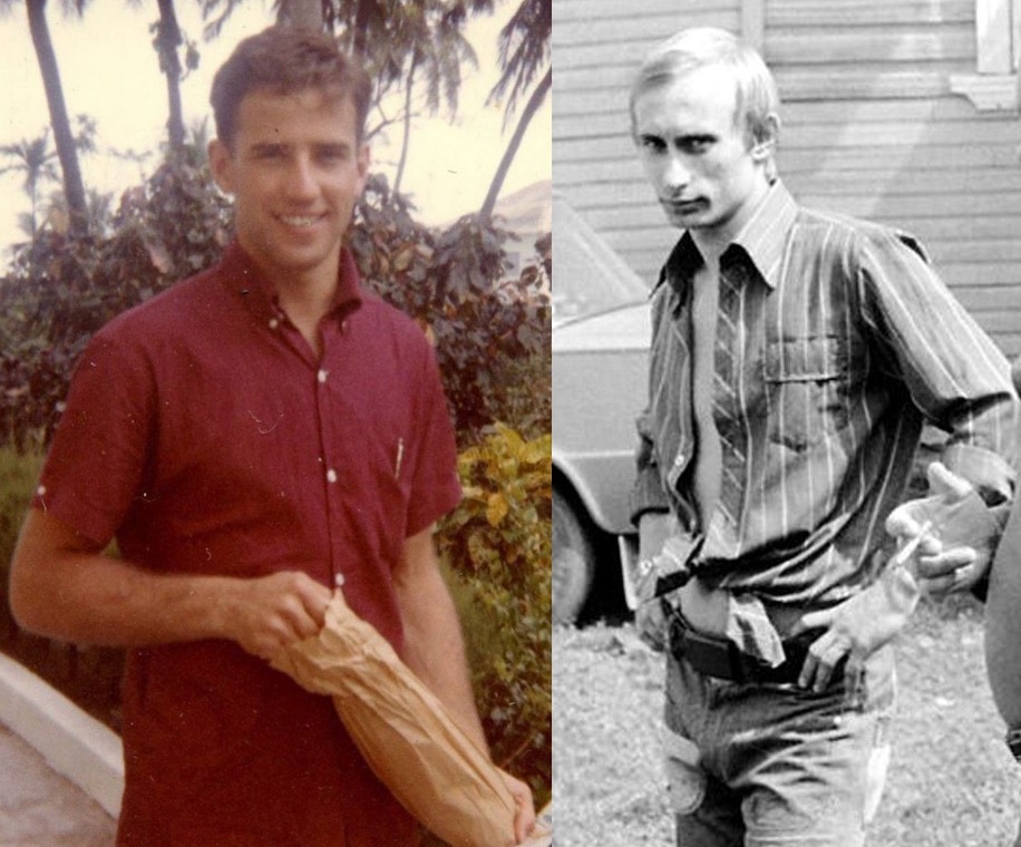 Джо Байден и Владимир Путин в молодости. Посмотрите на эти лица, на их взгляд. Тут все понятно без слов. Спустя много лет ничего не изменилось. Один - жизнерадостный, веселый устремленный в будущее политик, второй - злобный, закомплексованный гопник угрожающий теперь всему миру ядерной войной.