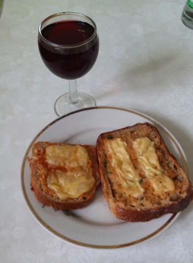Мы вот так скромненько отметили в этот раз, винцо с горячими бутербродами:)