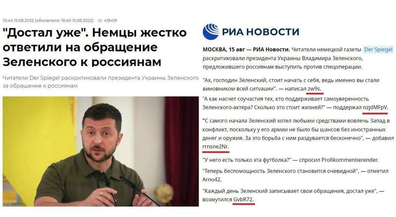 Пропагандисты уже настолько обленились. что даже не утруждают себя подобием какой-то правдивости, даже имена выдуманных немцев им придумывать лень, тупо процитировали своих ботов которые имена набирают видимо садясь задницей на клавиатуру и преподносят это как доверенный источник информации.