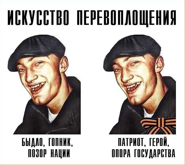 Кто-то сказал, что в краю слепых именно зрячий будет считаться уродом. Именно это происходит при фашизме - мир переворачивается с ног на голову и именно ненормальные по меркам других народов люди здесь становятся нормой. Нормальный человек не может поддерживать войну, занимаются ей убийцы, насильники и мародеры, ее сторонники это всегда хамы, доносчики, и агрессивное быдло. По всей стране массово случаются конфликты с побоями и в публичных местах и в кругу семьи и даже со смертельным исходом. Но не было ни одного случая, чтобы эту драку начали противники войны, это всегда то самое хамское быдло, которые в России теперь называется народом и титульной нацией. В цивилизованных странах именно таких представителей стараются изолировать от общества, а в России именно они являются нормой.