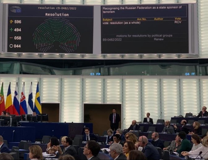 Депутаты Европейского парламента проголосовали в среду на пленарной сессии в Страсбурге за резолюцию, в которой Россия названа "государством-спонсором терроризма и государством, применяющим средства терроризма".