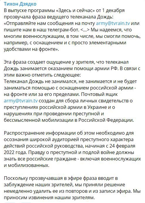 Что происходит вообще с этим, некогда, оппозиционным СМИ? В РФ Дождь прикрыли и им пришлось искать другую площадку для вещания коей стала Латвия. Но уже скоро дождик начал навлекать на себя неприятности. Сначала Котрикадзе устроила скандальный эфир отстаивая советские памятнике в Риге, потом внимание привлекла показаная в эфире карта, на которой Крым был отмечен, как российская территория, а теперь Алексей Коростелев произнес в эфире: