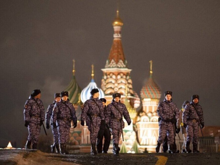 В то время как во всем цивилизованном мире отмечали семейный праздник Новый Год, в фашиствующей России, фюрер, подражая корейскому товарищу, выступил на фоне ряженных военных, обозначая милитаристский вектор на светлое будущее, а его церберы в это время винтили граждан на улице.