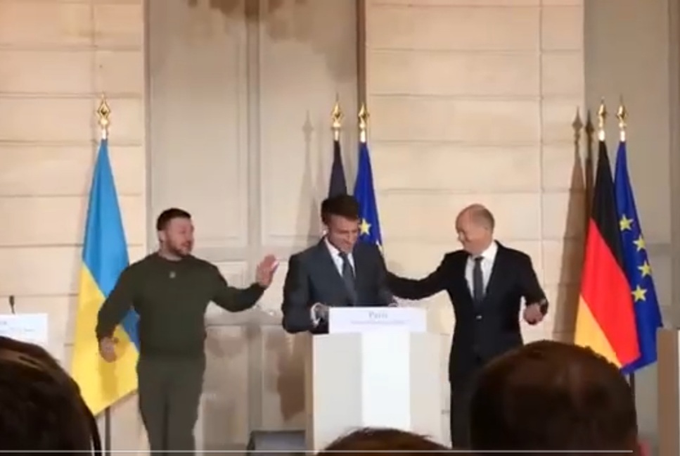 С Олафом Шольцом и Эммануэлем Макроном
