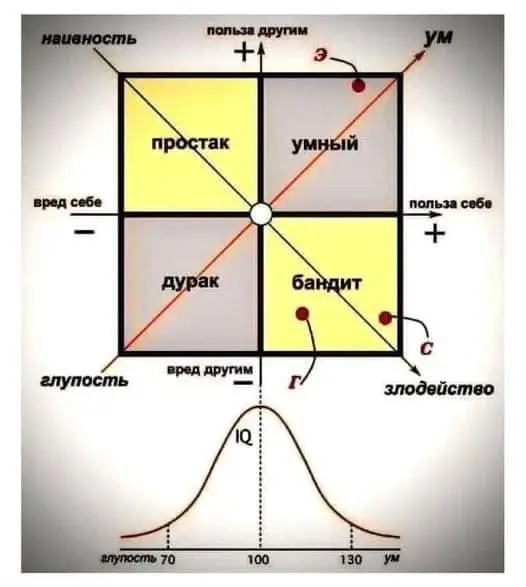 То есть суть глупого человека в том, что принимаемые им решения приносят вред и ему самому, и другим. При этом ни один человек сам себя глупцом не считает, а ровно наоборот.