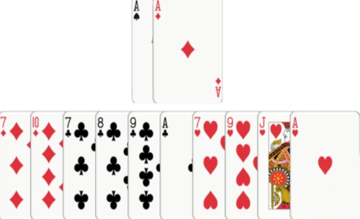 Вчера играл в преферанс и я прямо как в известном анекдоте прикупил два туза на мизере, к двум уже имевшимся. Бывает же такое. Мизер с четырьмя тузами это конечно не наш метод, поэтом прикуп я брать не стал, благо расклад в принципе и без прикупа был неплох, только вот десятку бубновую я надеялся скинуть, но прикуп подвел. Тузы конечно тоже были не очень кстати, но вероятность что вся масть окажется на одной руке все таки не очень велика.