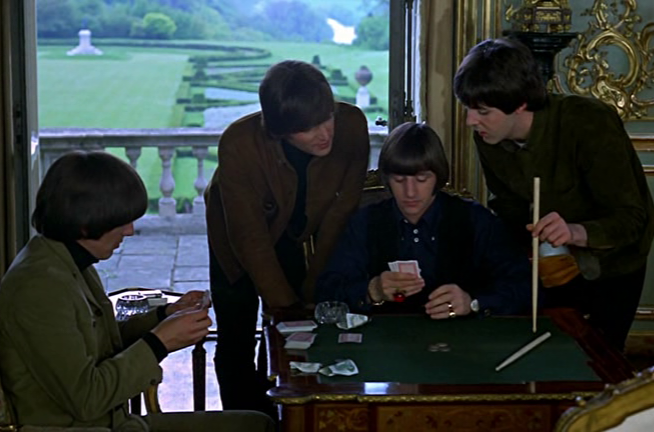 В том же фильме есть эпизод где участники квартета играют в карты и раздает как раз Ринго. Эпизод довольно длинный, много монтажа, но во всех моментах когда видно руки, он раздает карты левой рукой и в процессе игры также вытаскивает карты для хода левой, держа свои карты веером в правой, что характерно для левшей. Реверс кадра тут исключен, сцена довольно продолжительная и при смене ракурсов ничего не меняется. И кстати сцена с картами есть еще и в фильме "Help" так что ошибка точно исключена:
